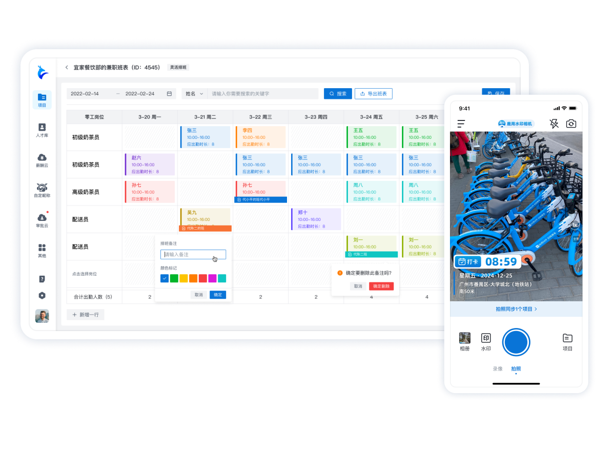 智能排班+水印相機(jī)打卡