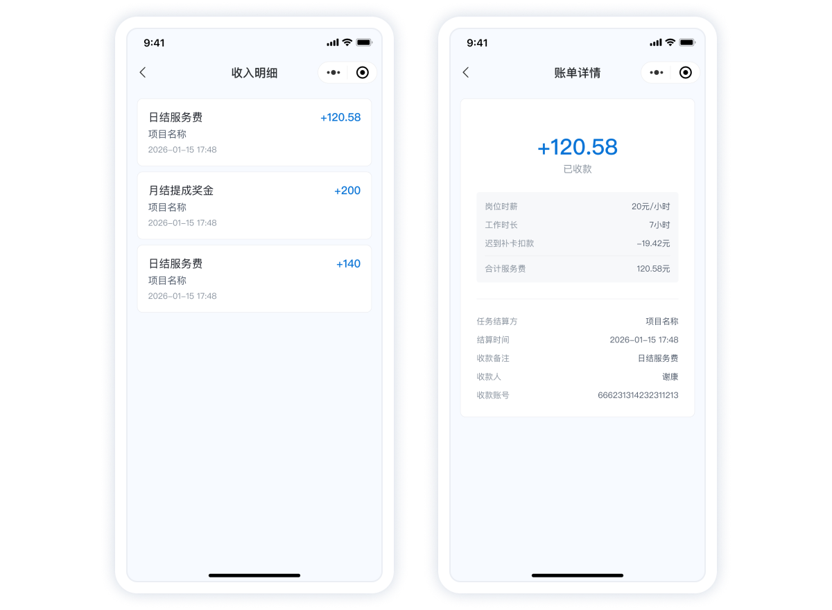 支持日結(jié),周結(jié),完工結(jié),實(shí)現(xiàn)零工快速結(jié)算