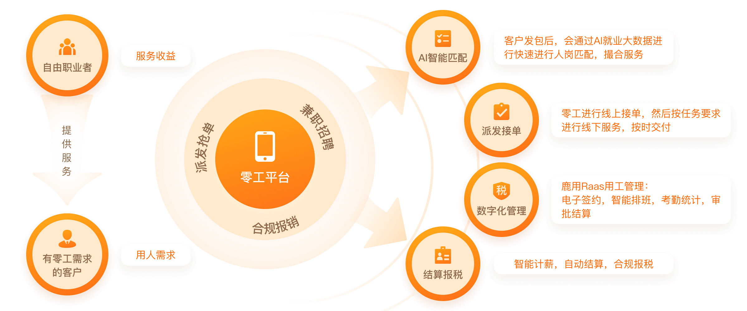 基于LBS+平臺(tái)大數(shù)據(jù),通過(guò)AI大數(shù)據(jù)快速響應(yīng)匹配,快速完成零工招募